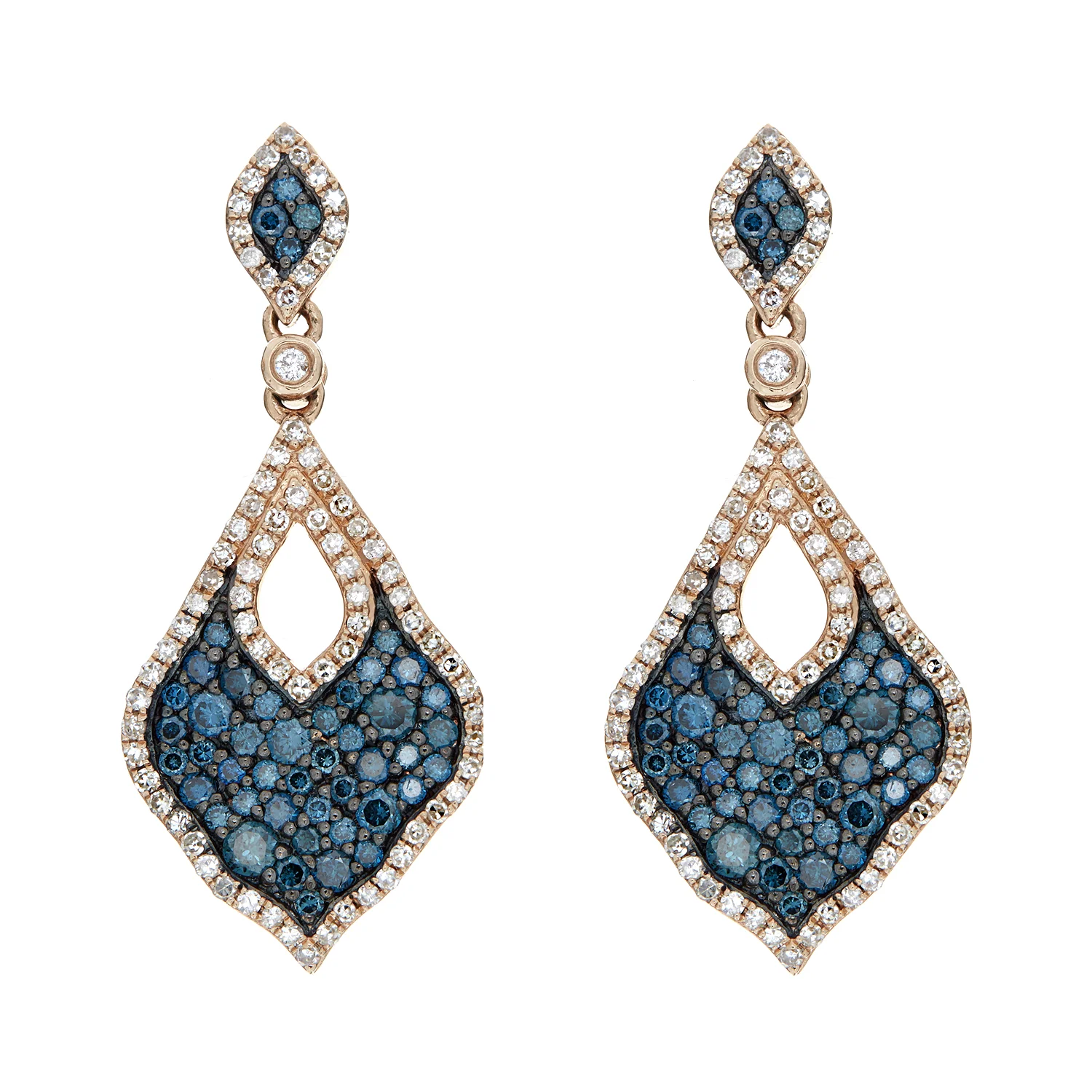 18k RG White Topaz, Midnight Blue, London Blue Topaz and Diamonds Earrings