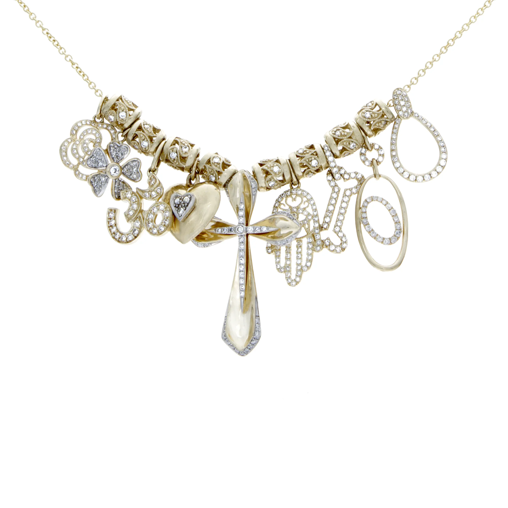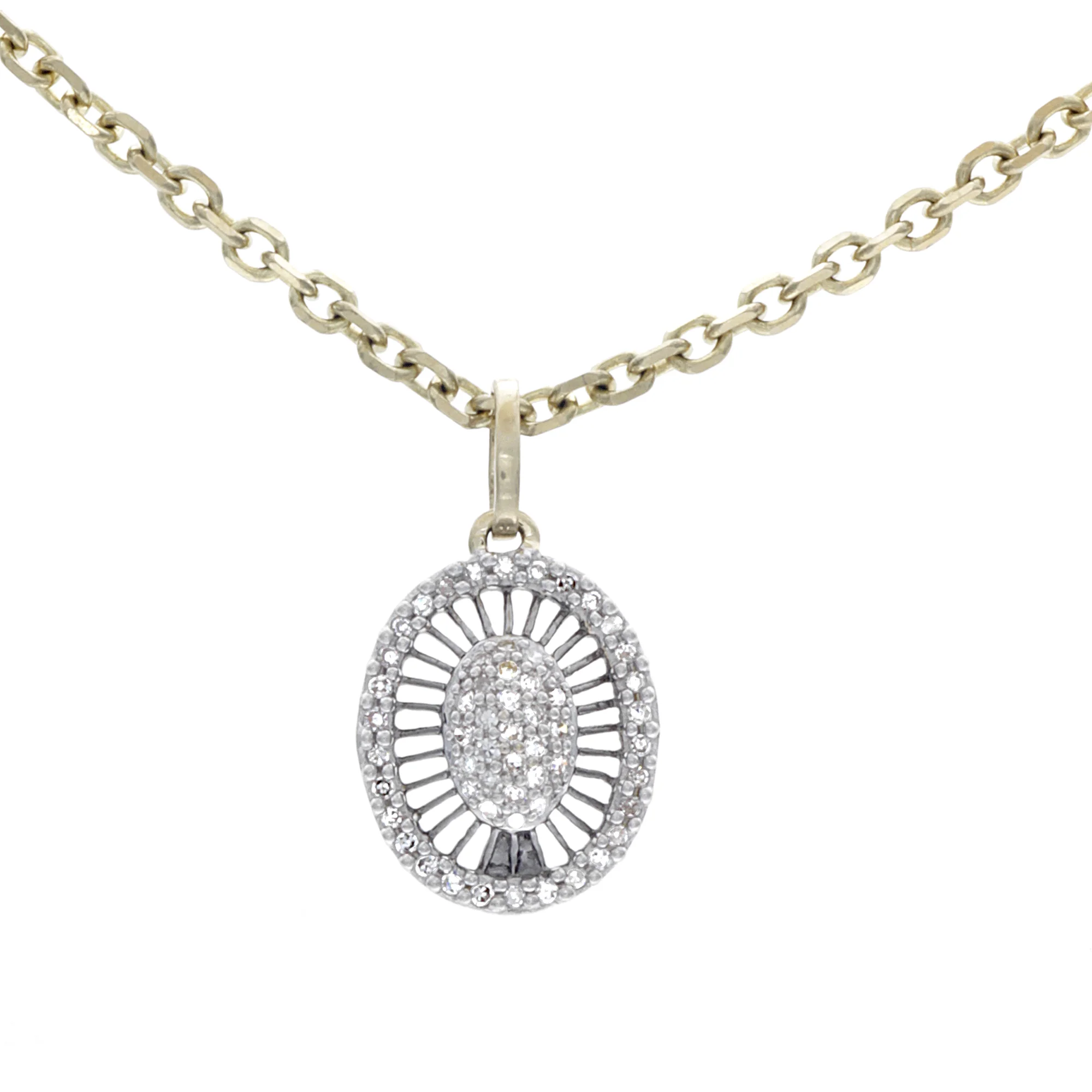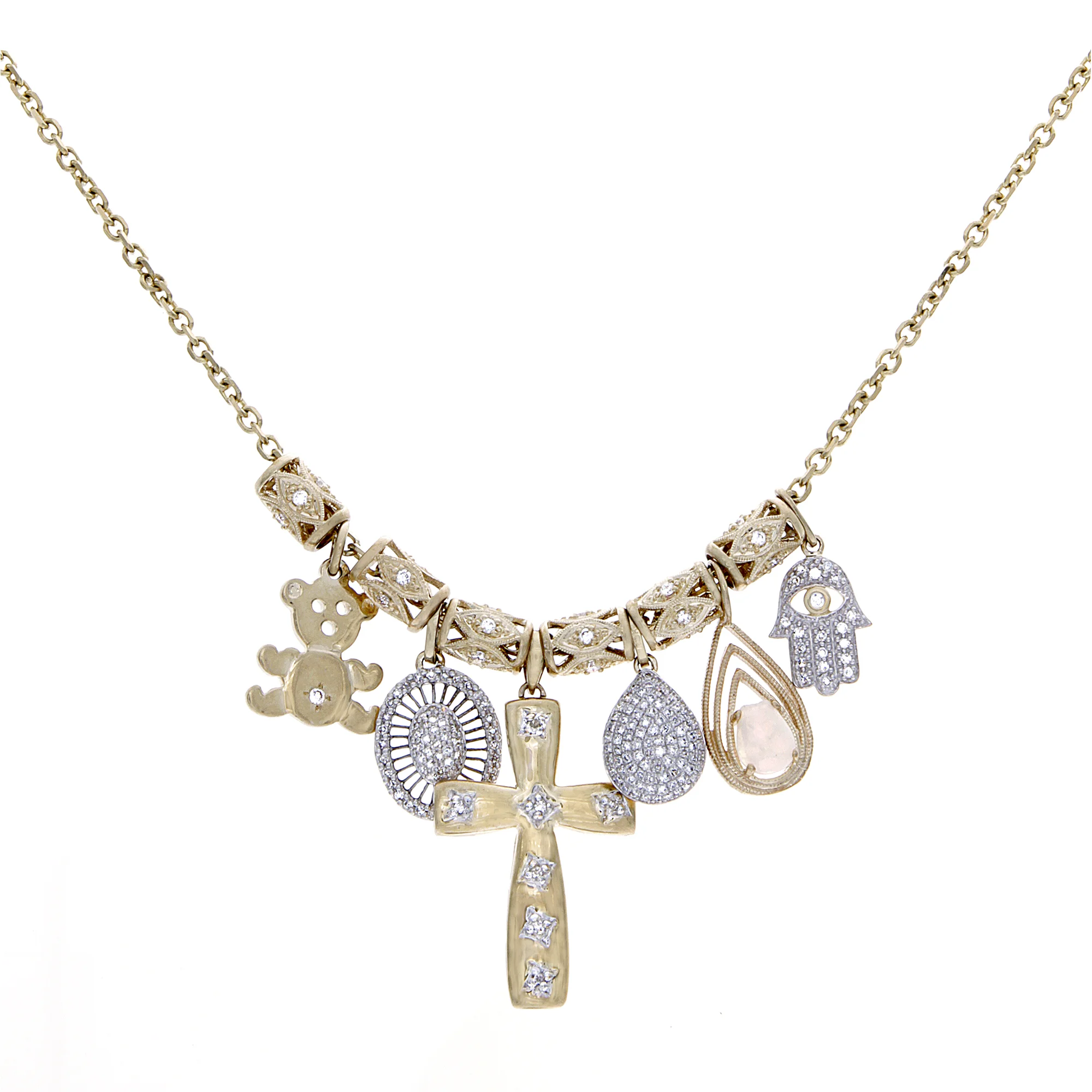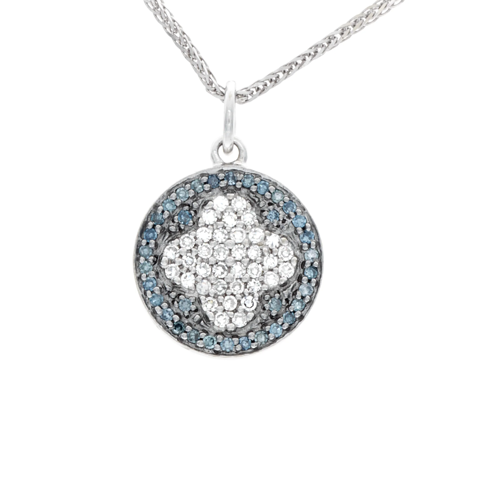 18k YG Oxidized Diamond Four Leaf Clover Charm Pendant