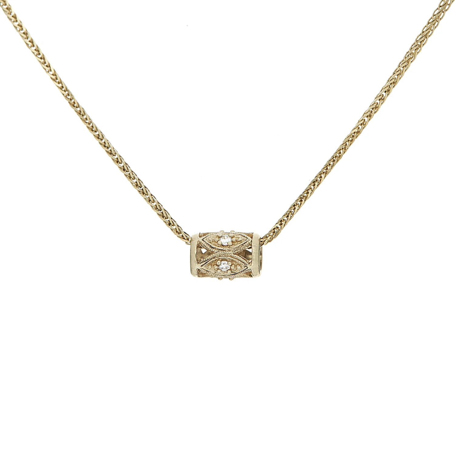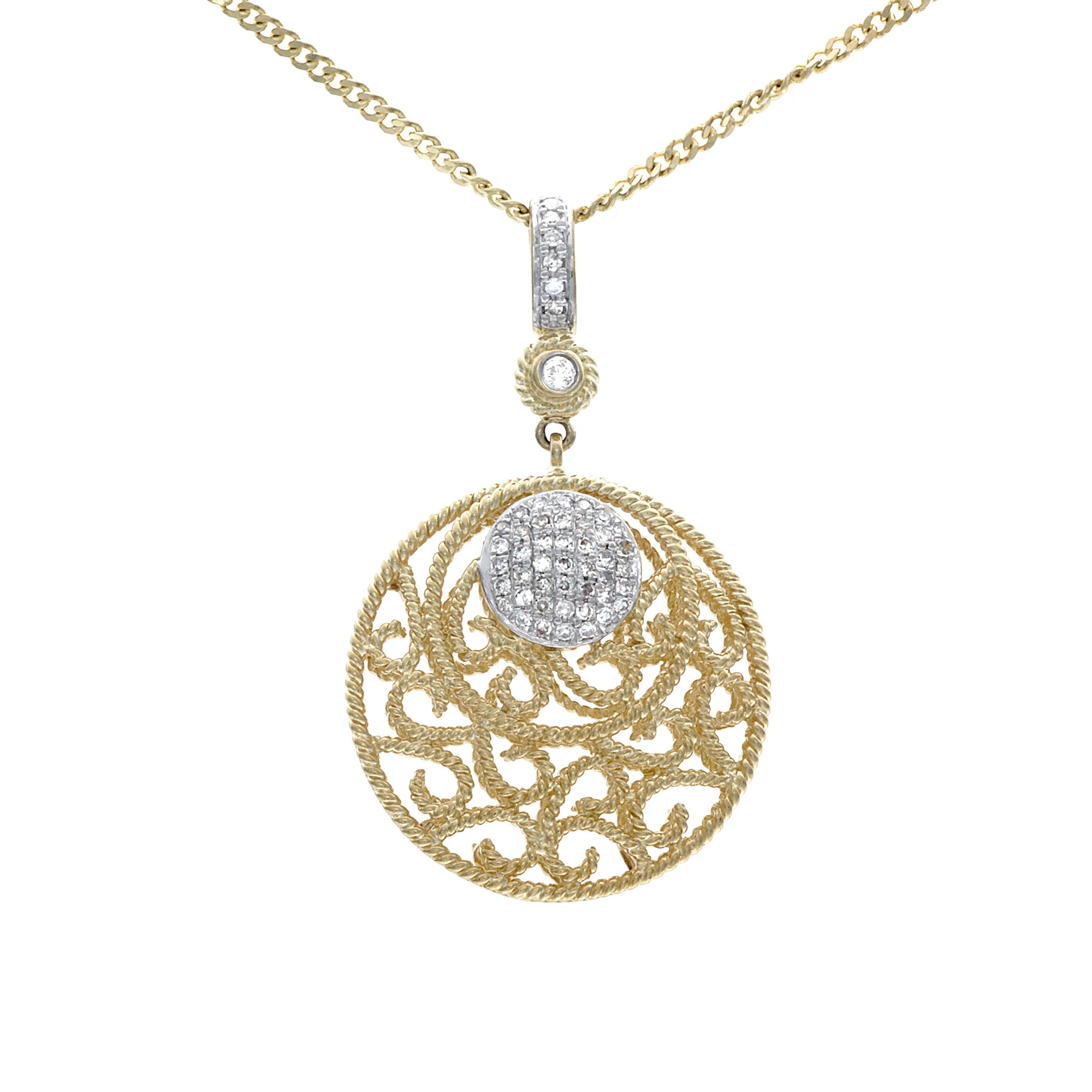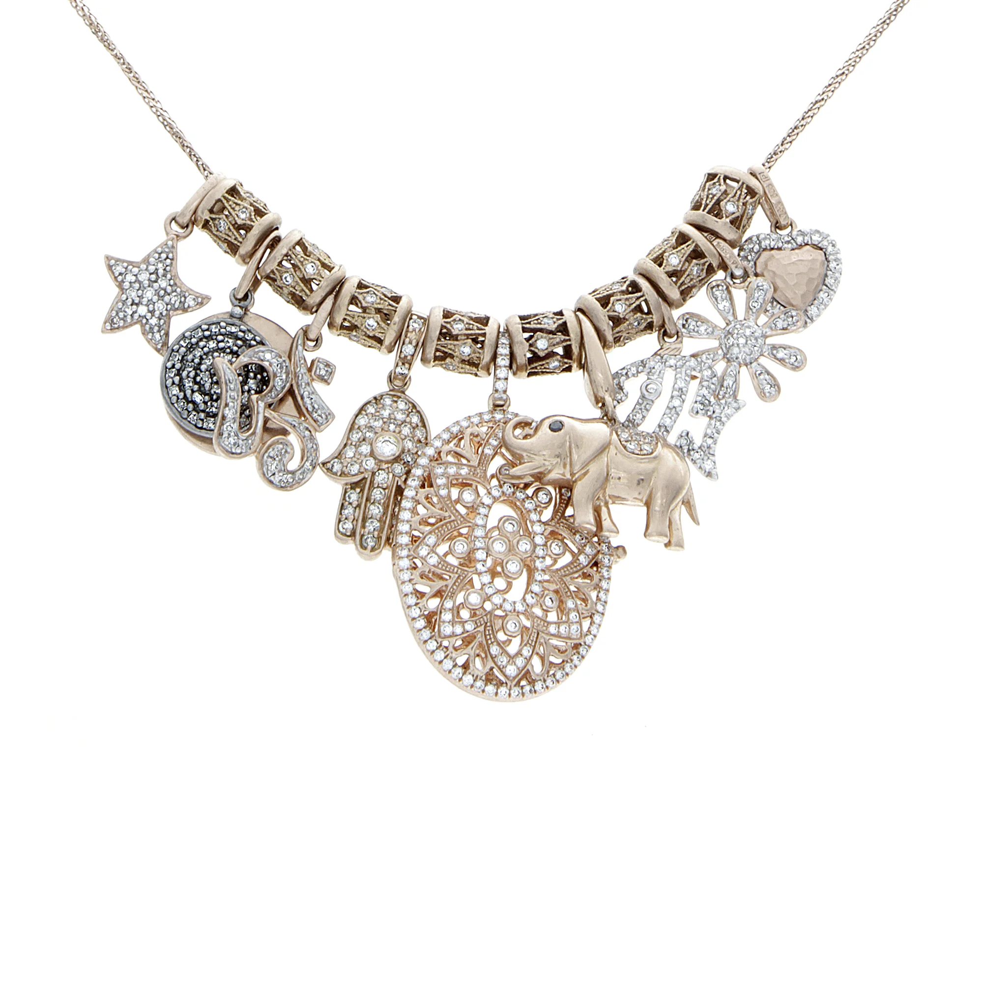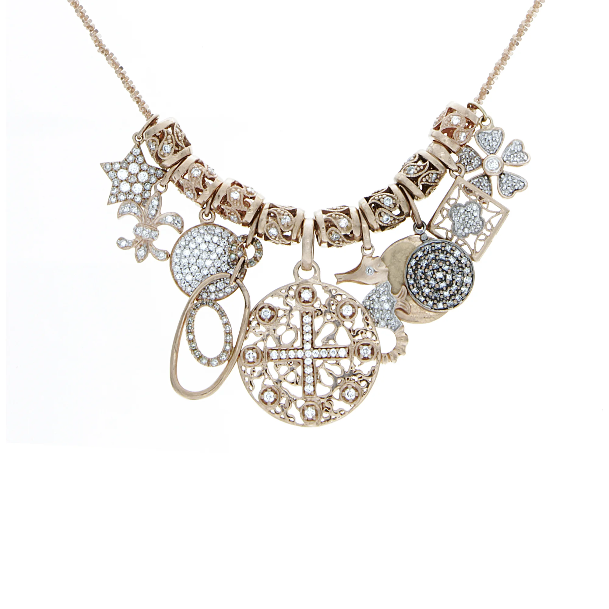 18k YG Oxidized Diamond Four Leaf Clover Charm Pendant
