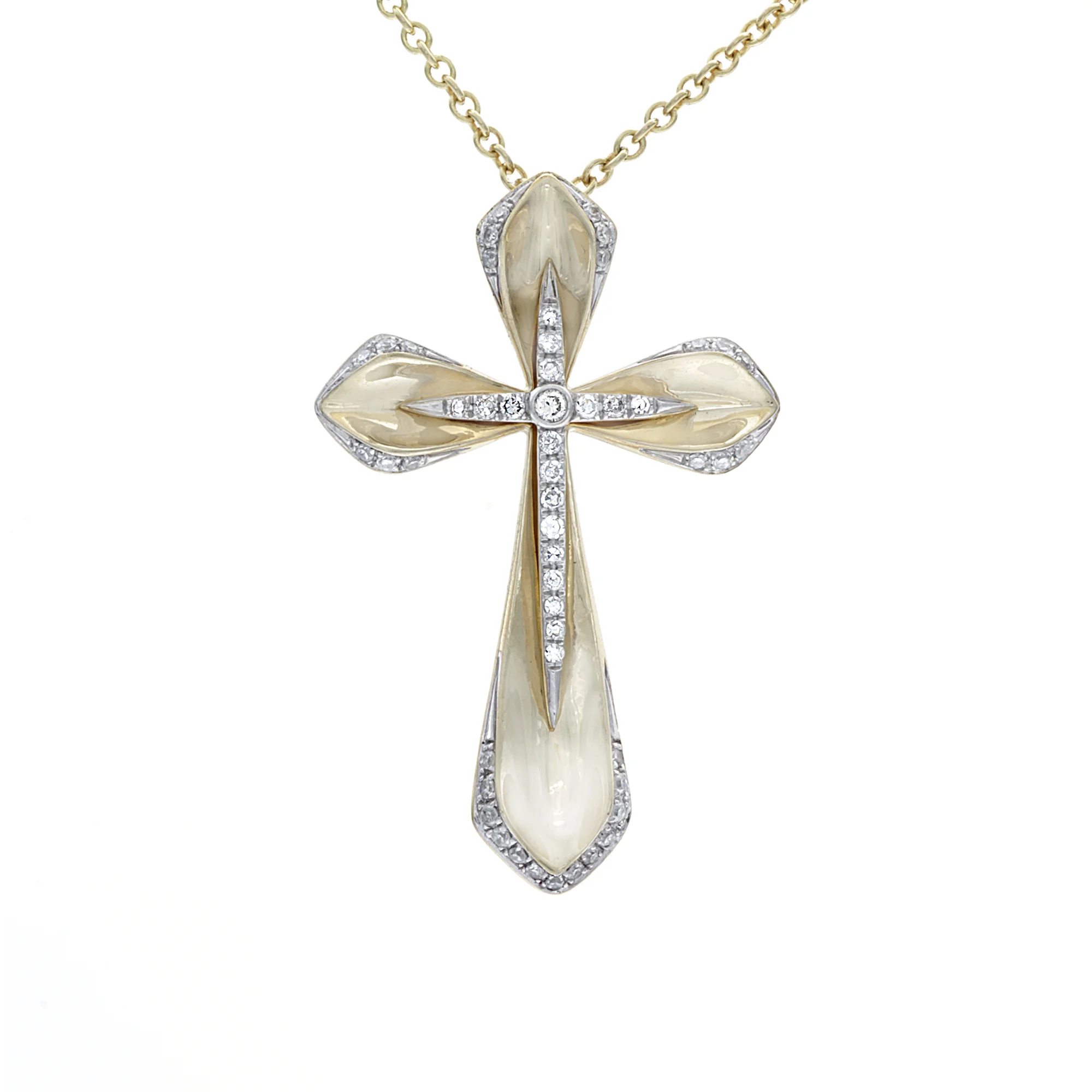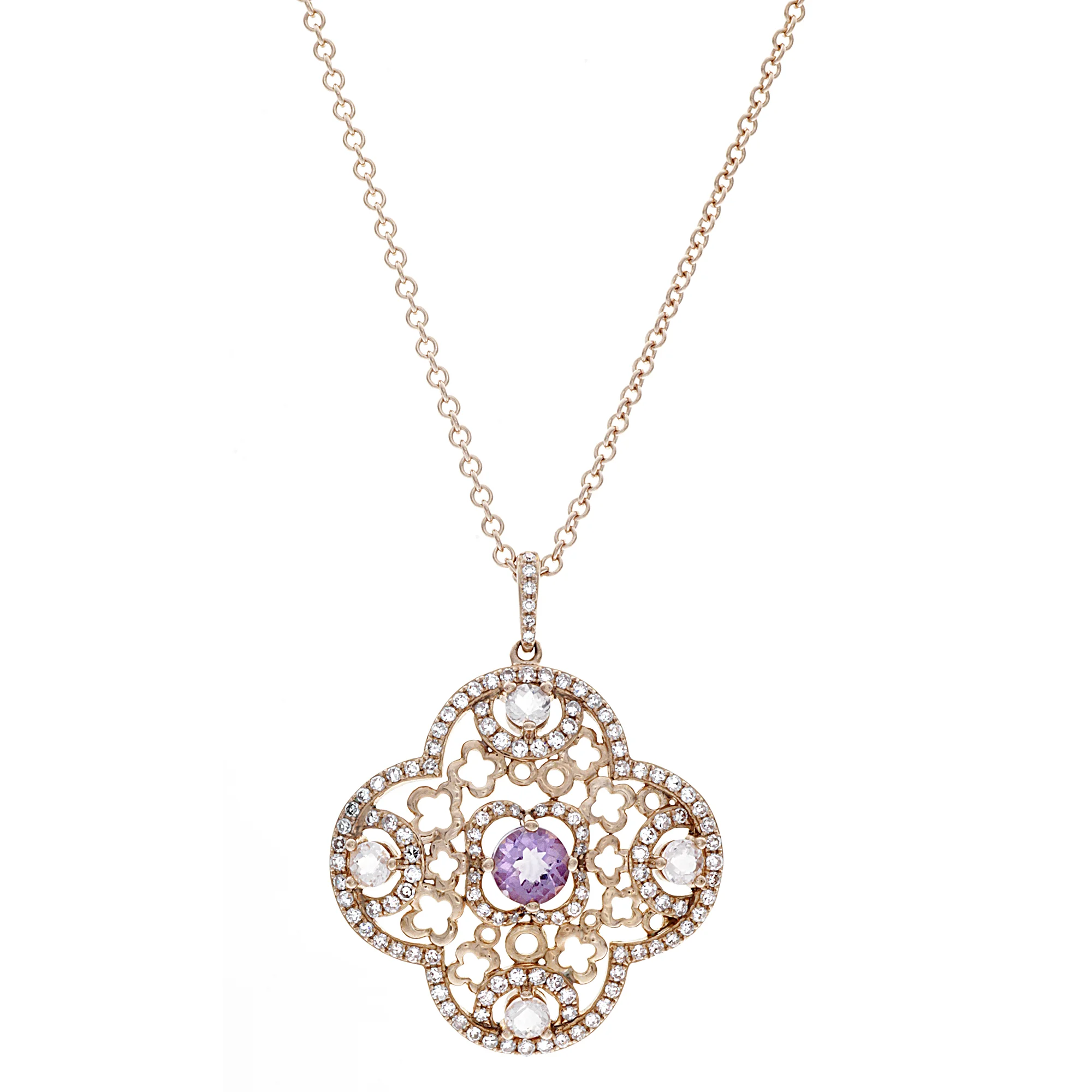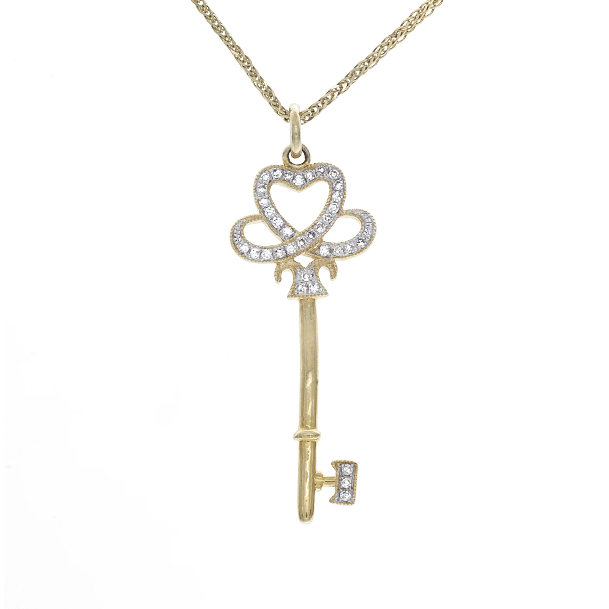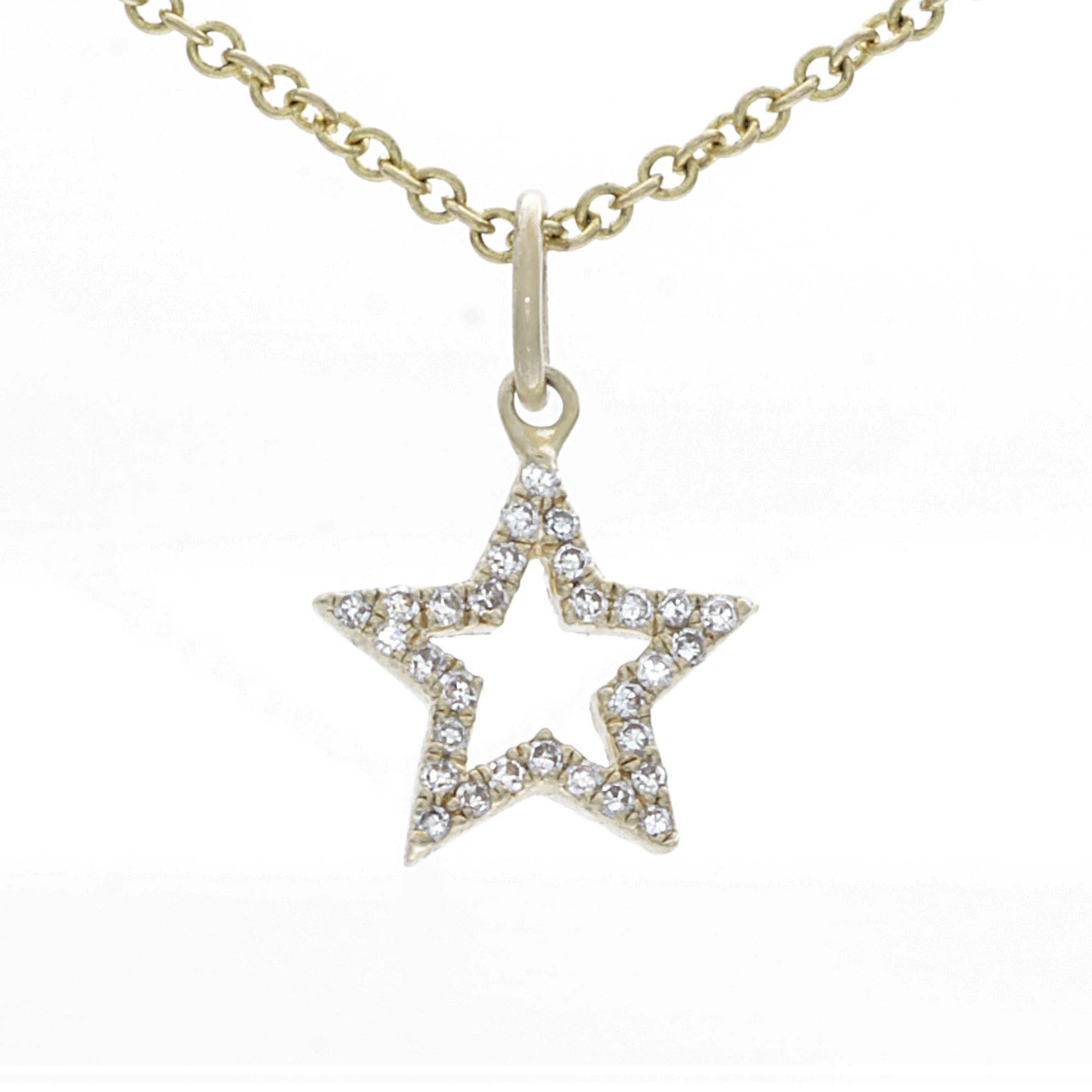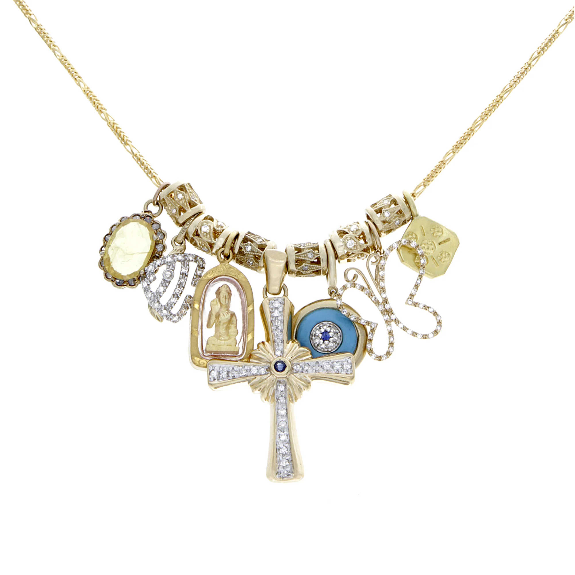 18k YG Oxidized Diamond Four Leaf Clover Charm Pendant