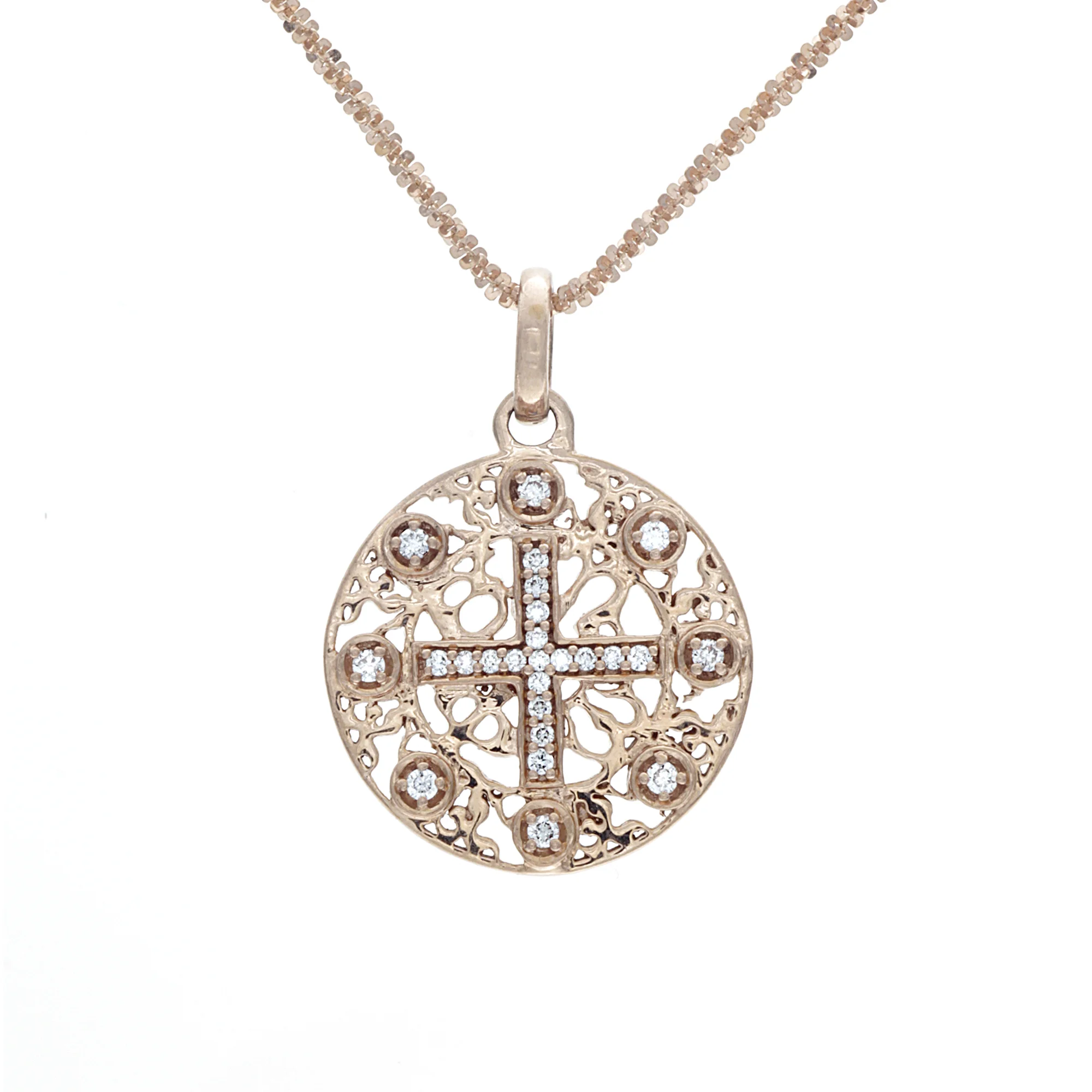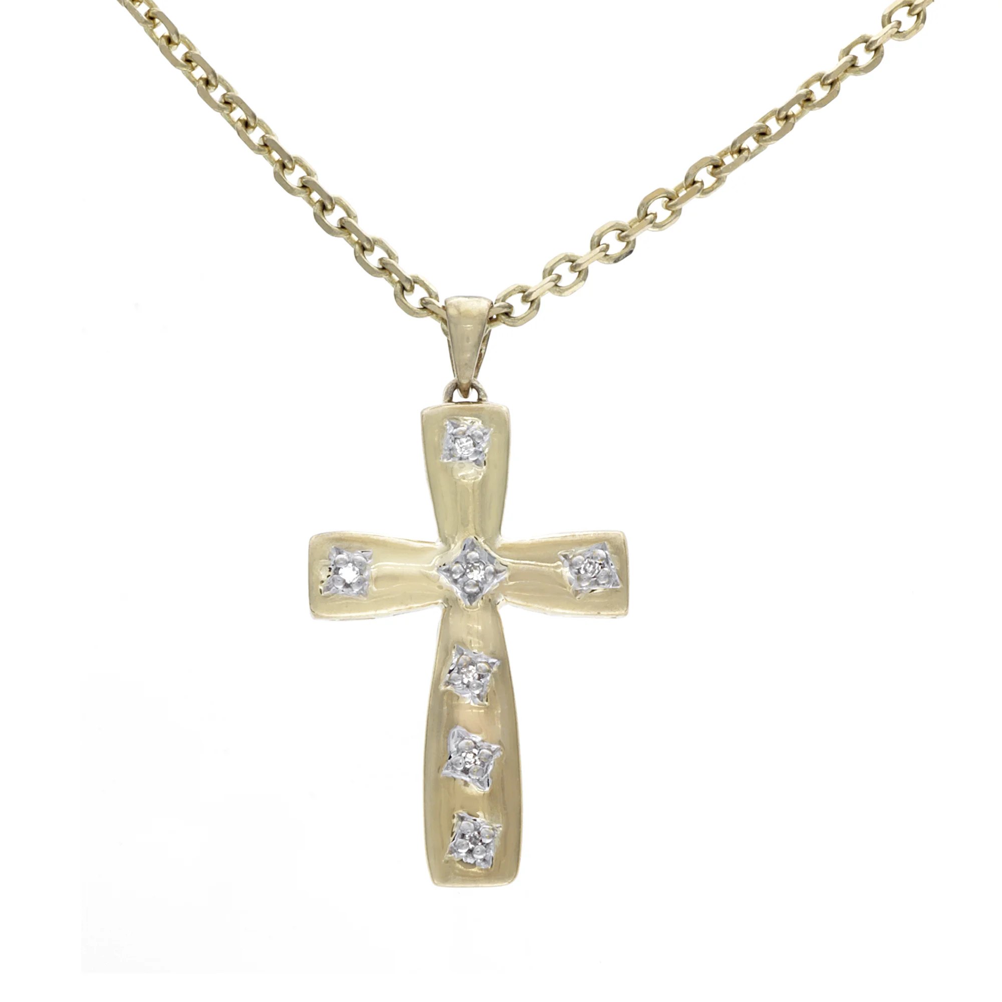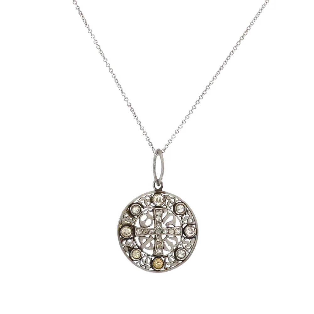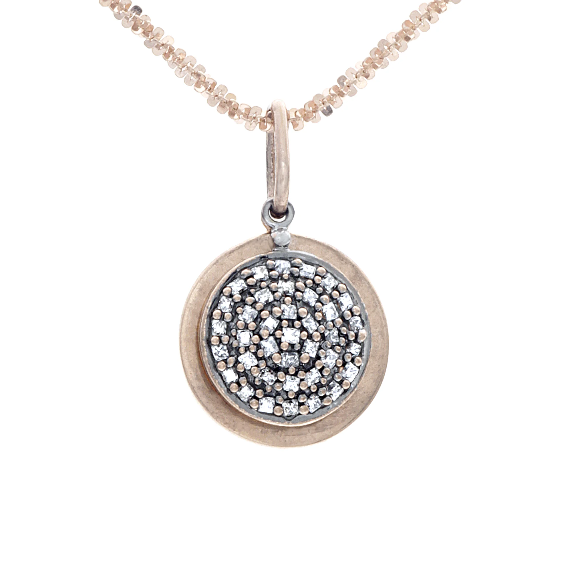 18k YG Oxidized Diamond Four Leaf Clover Charm Pendant