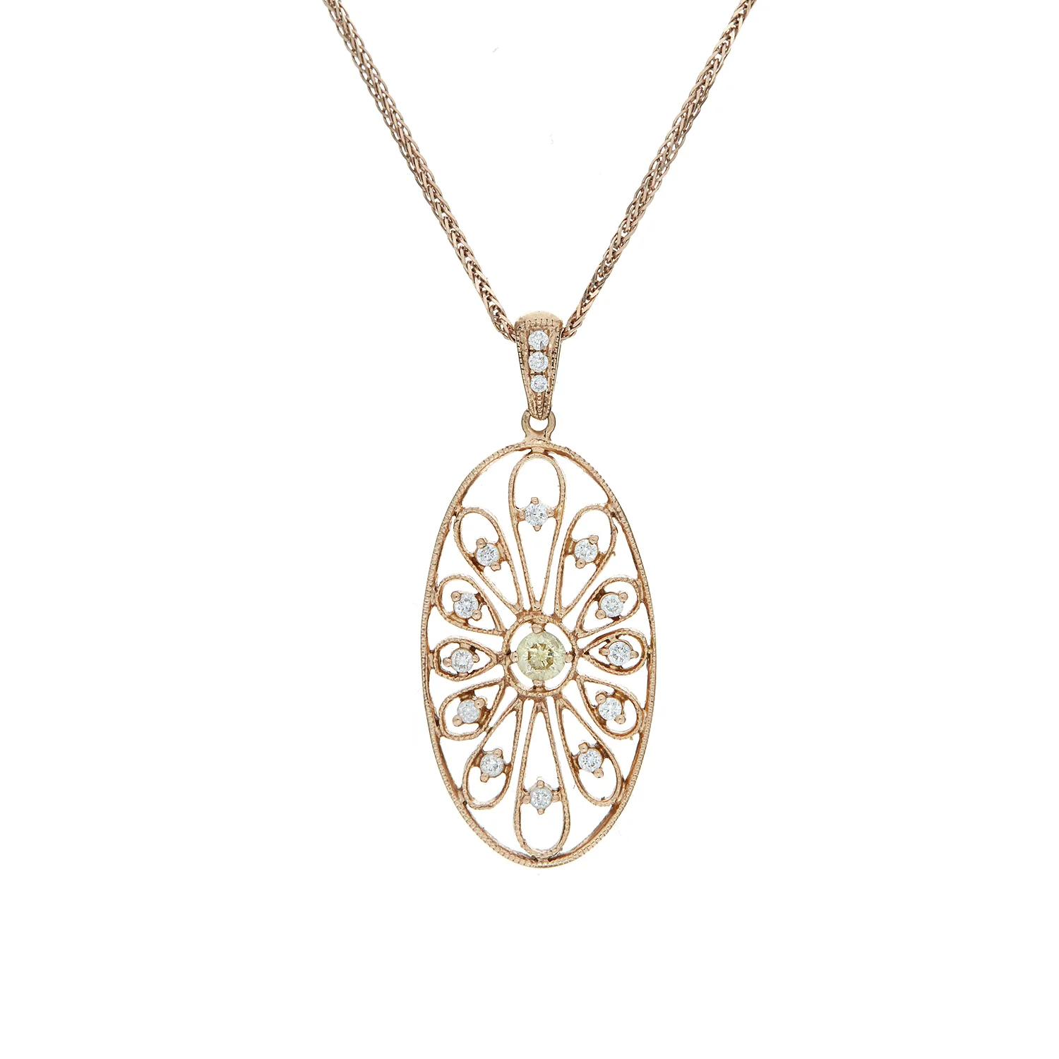 18k YG Chrysoprase Pearl Necklace with Diamond Pendant