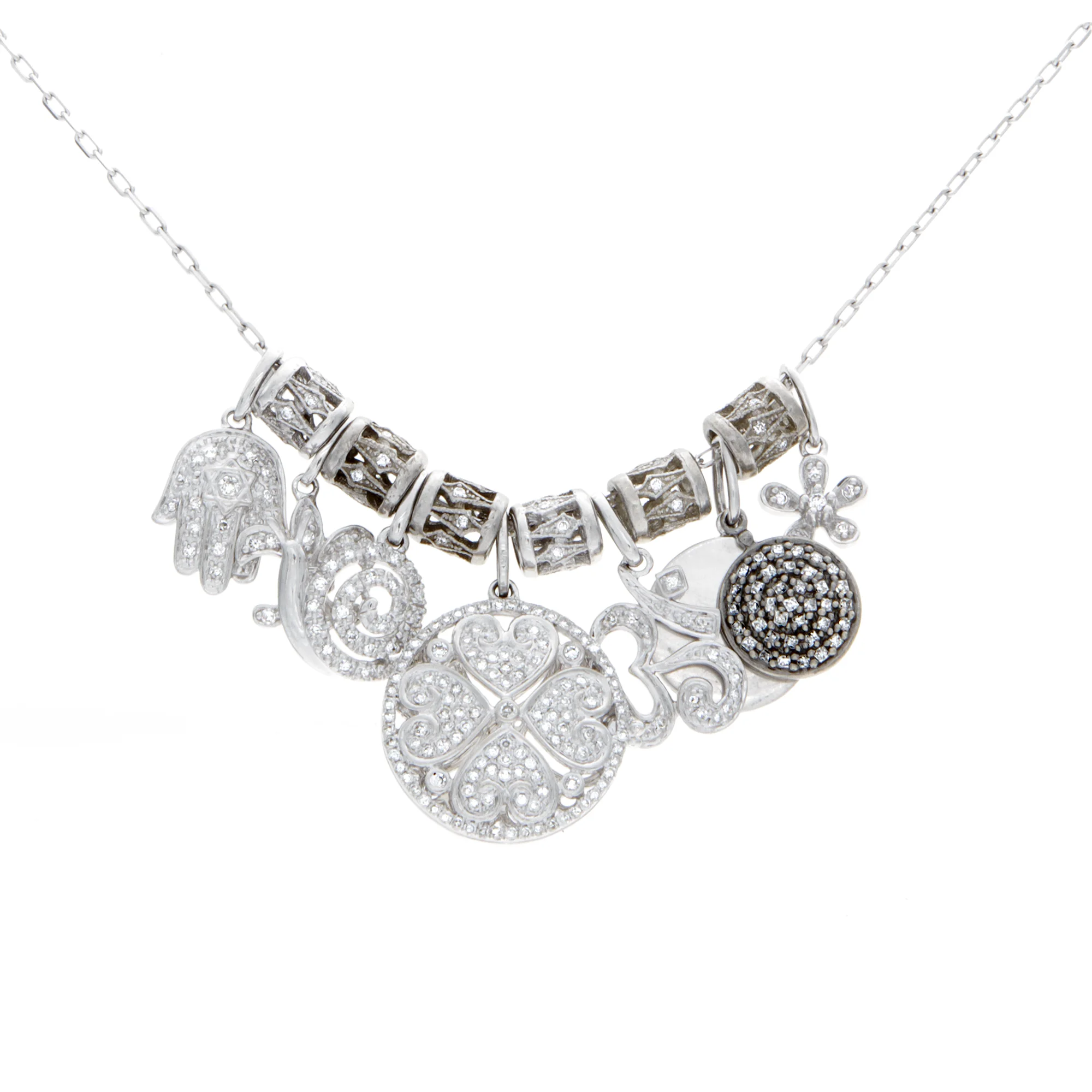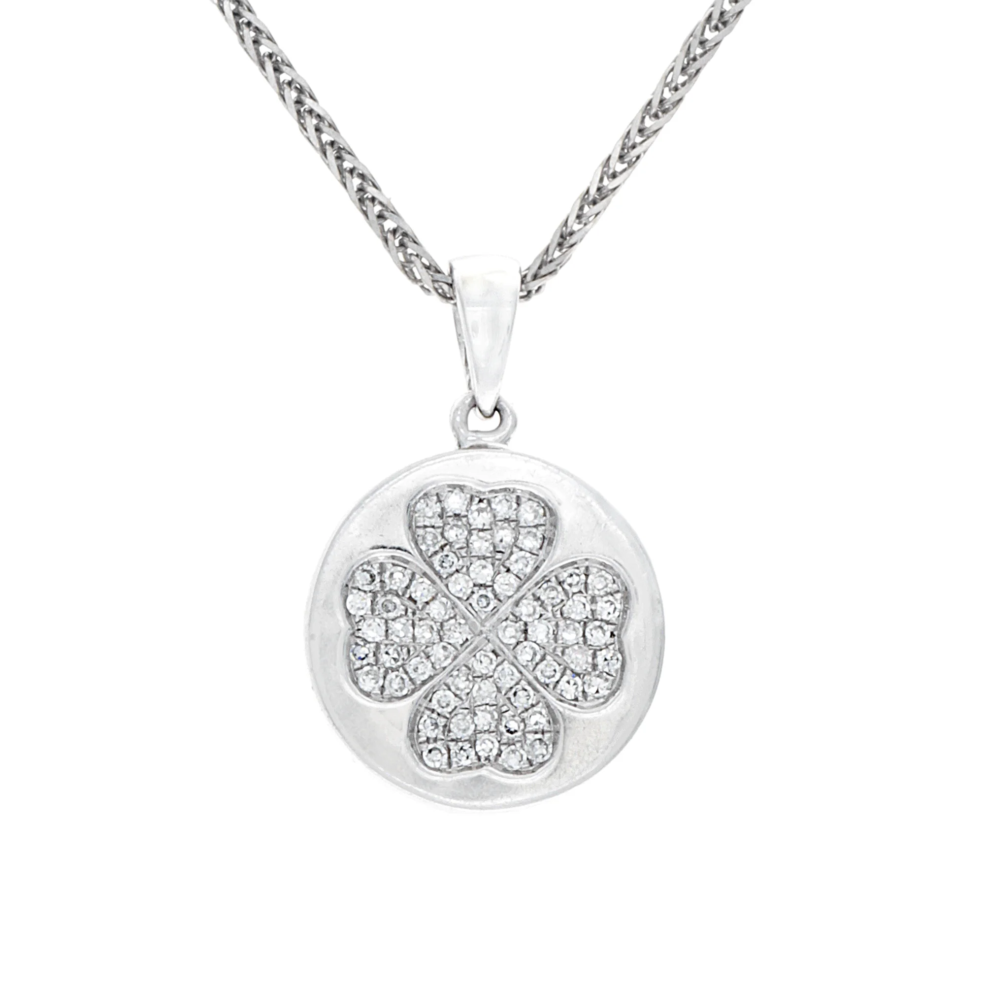18k WG Black Enamel Diamond 4 Leaf Charm