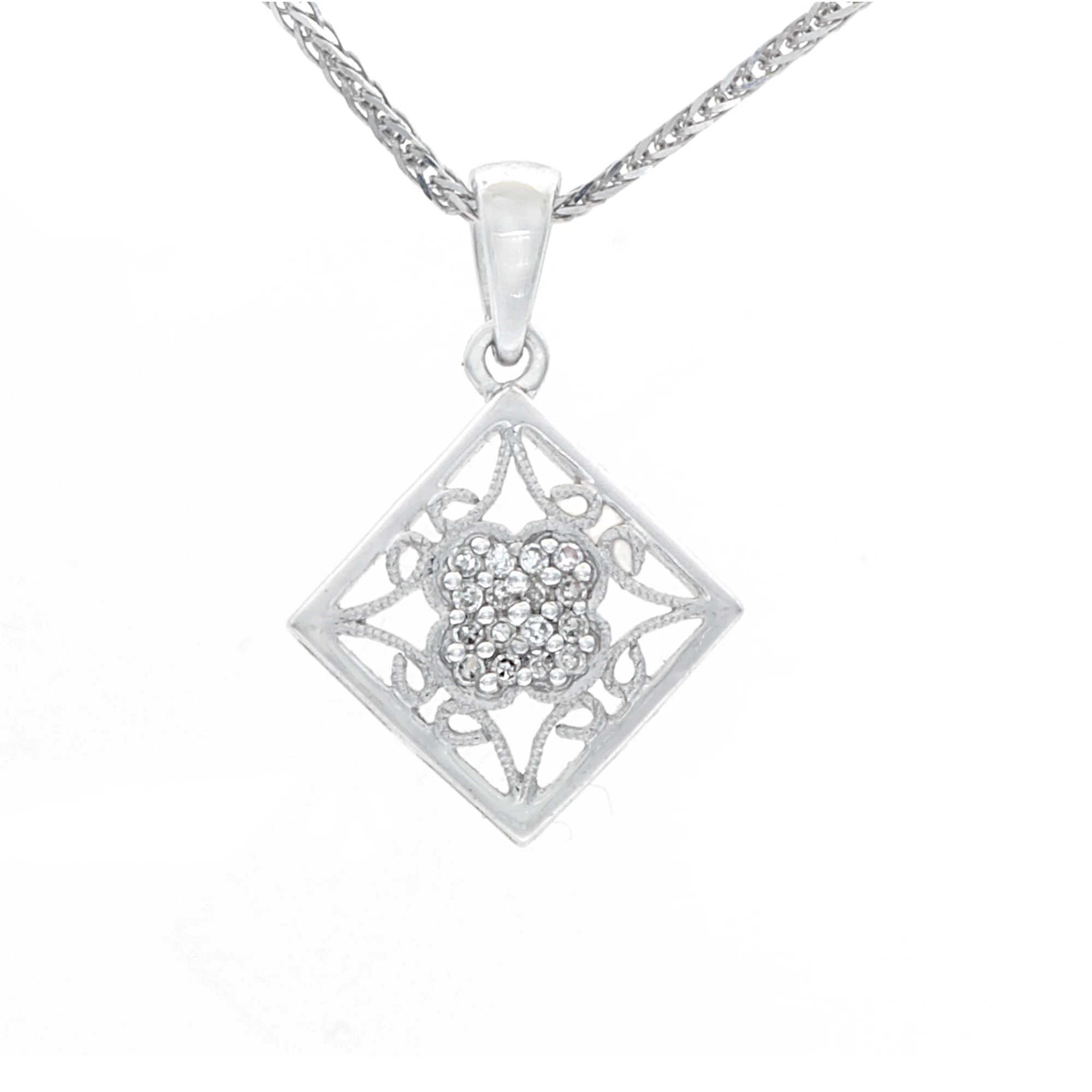 18k WG White Topaz Chain with White Topaz Diamond Egg Charm