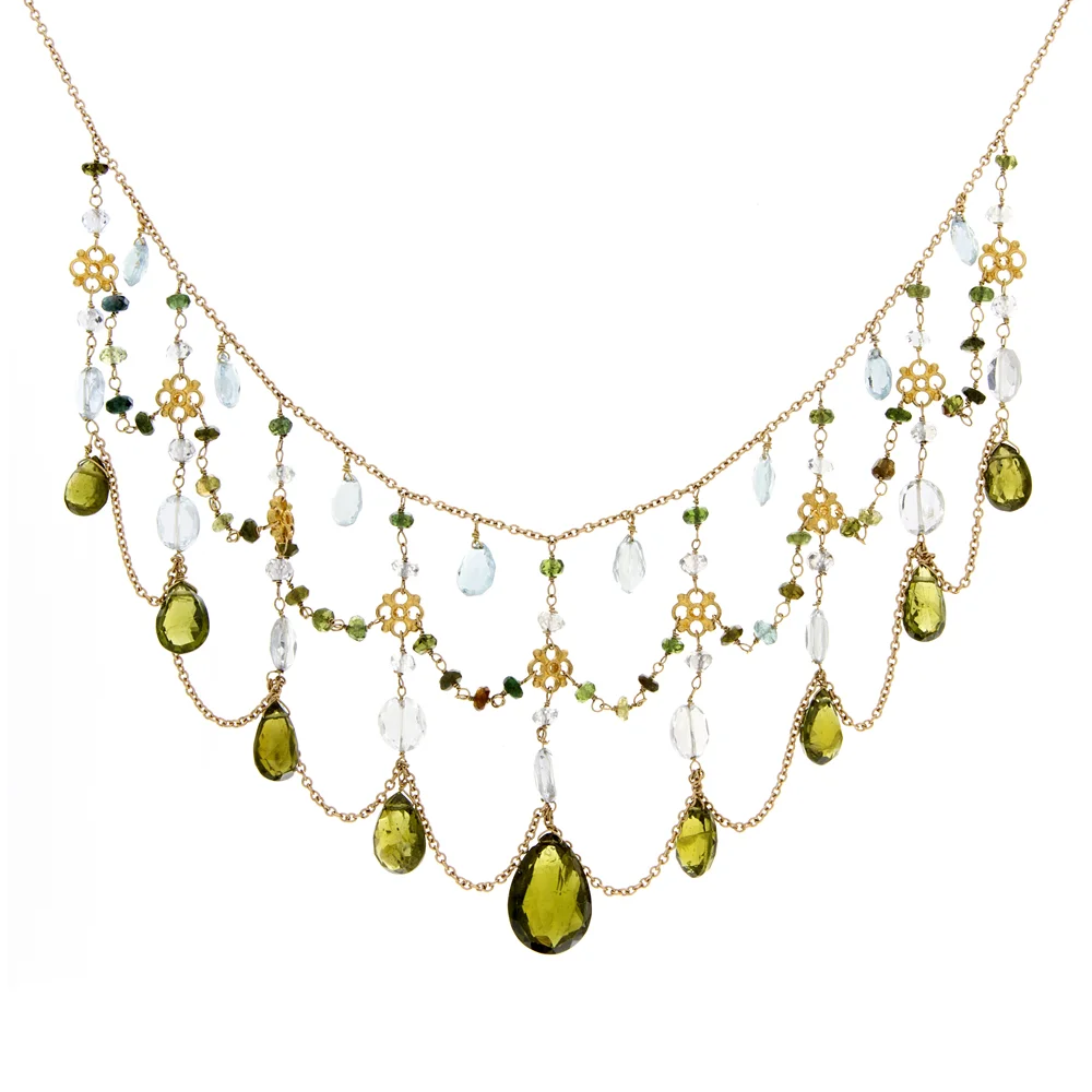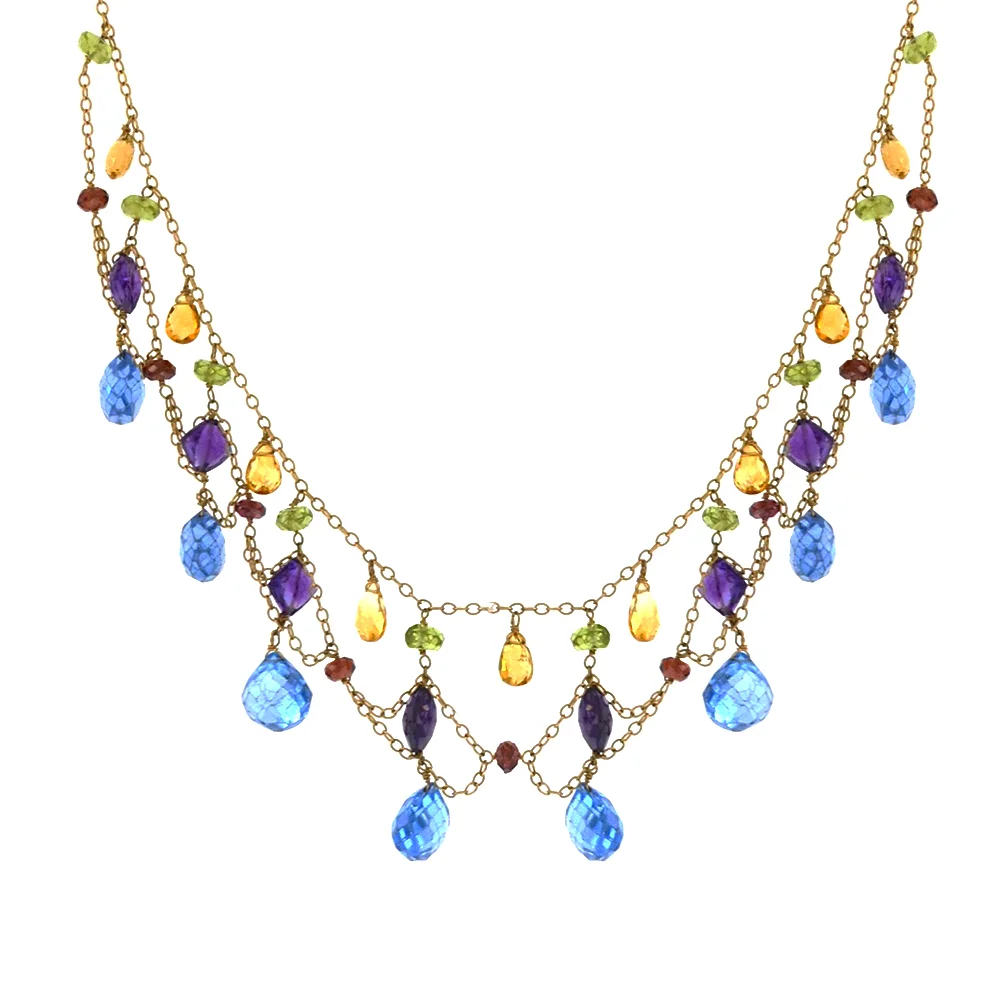 18k YG Peridot, Amethyst, Blue Topaz, Citrine, White Topaz Necklace