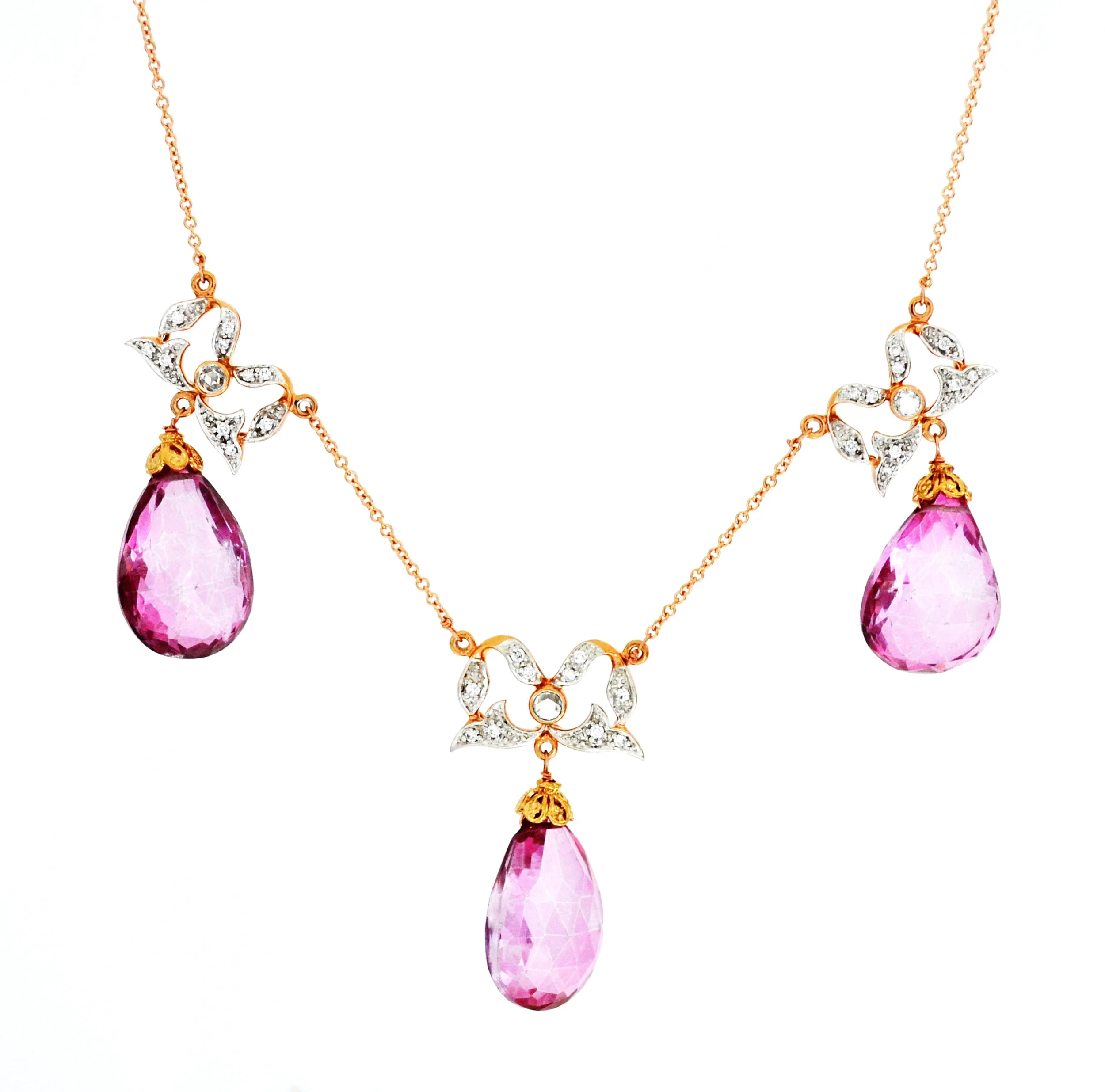 18-22k WG Pink Tourmaline. Spinel Necklace