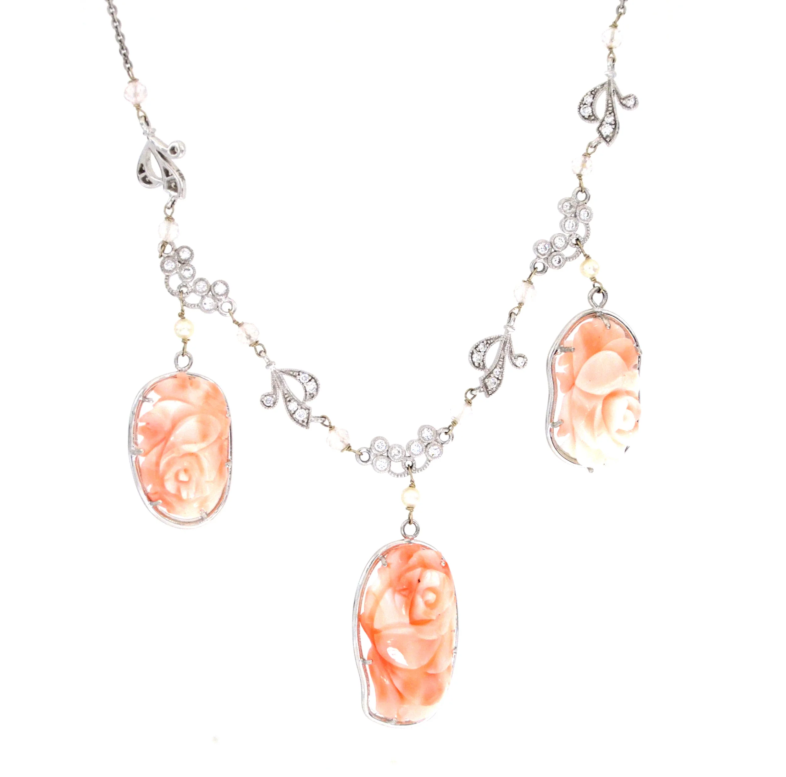 18k WG Rose Quartz, White Topaz Princess Necklace