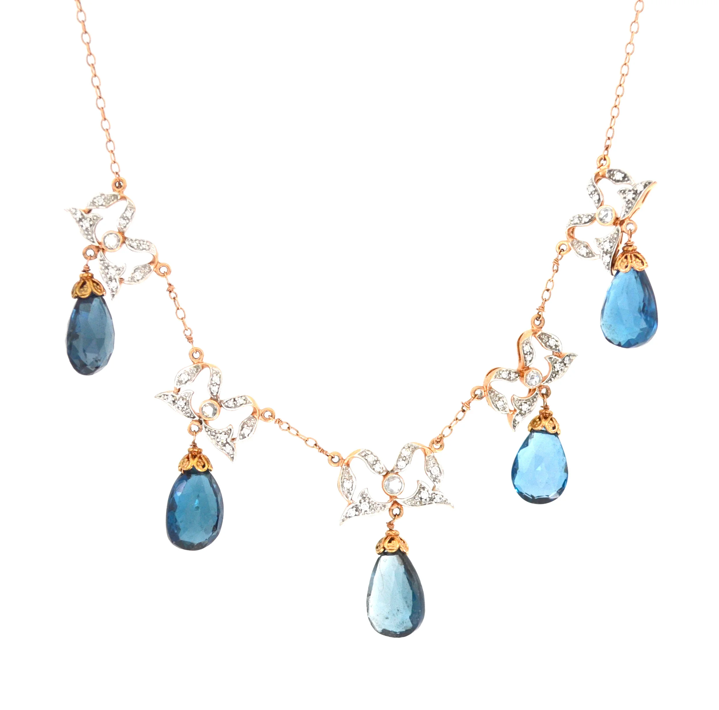 18k RG London Blue Topaz and Diamonds Necklace