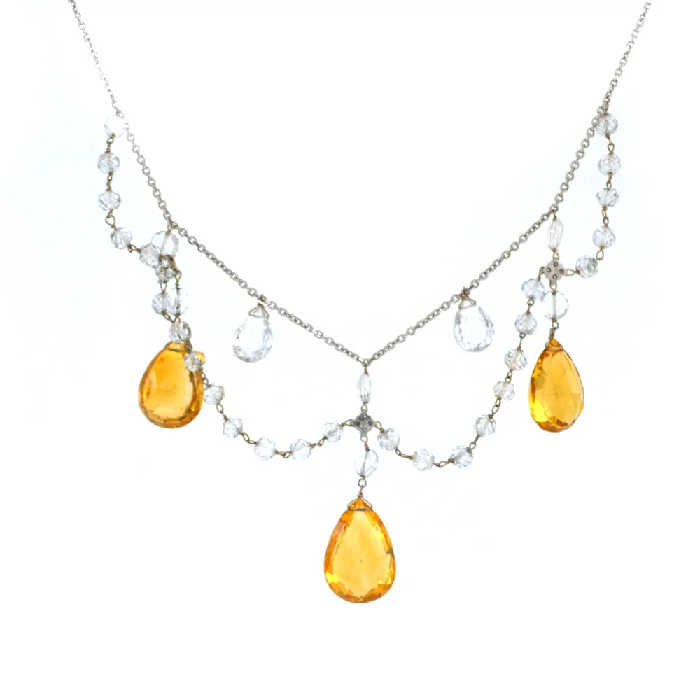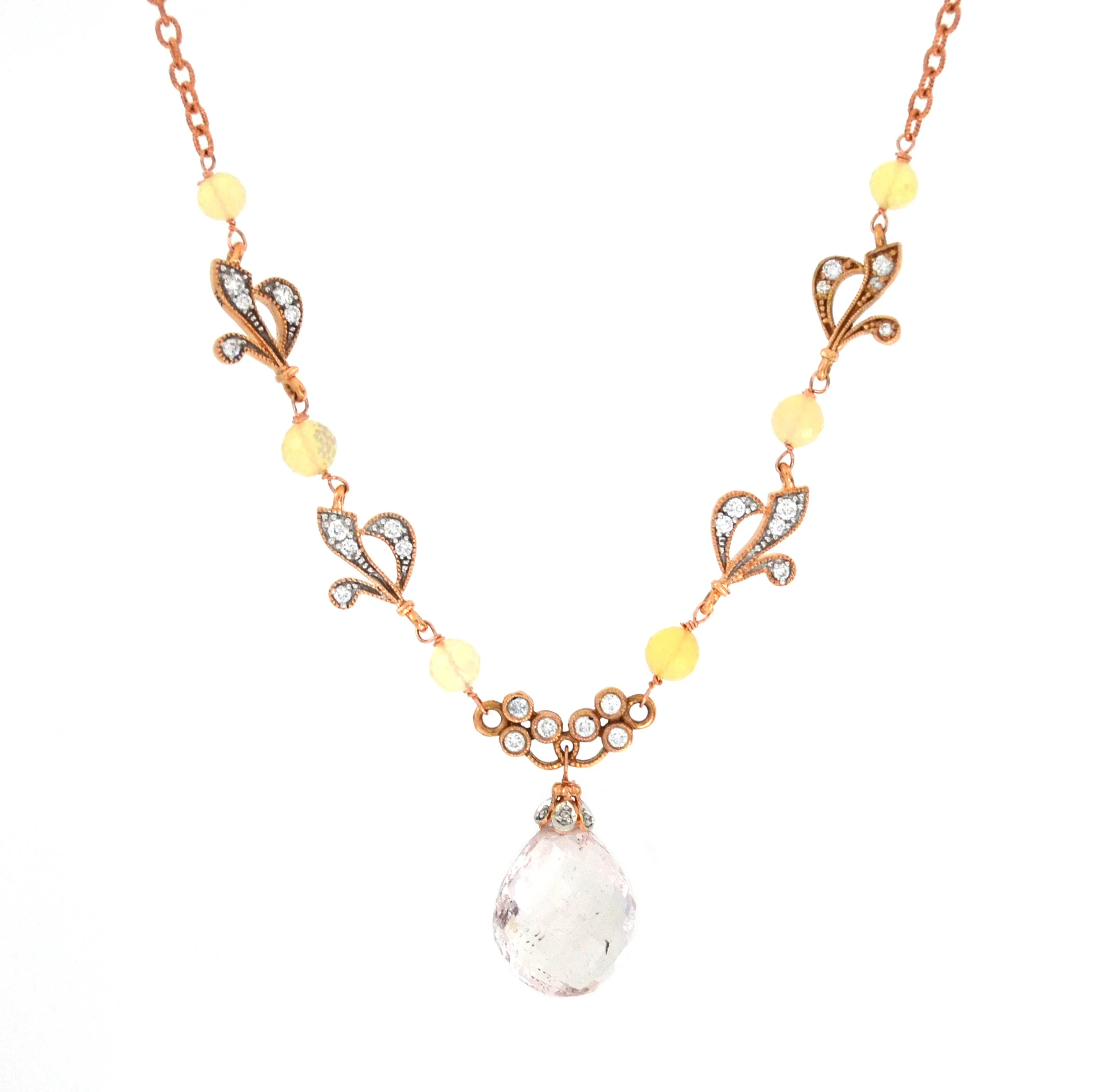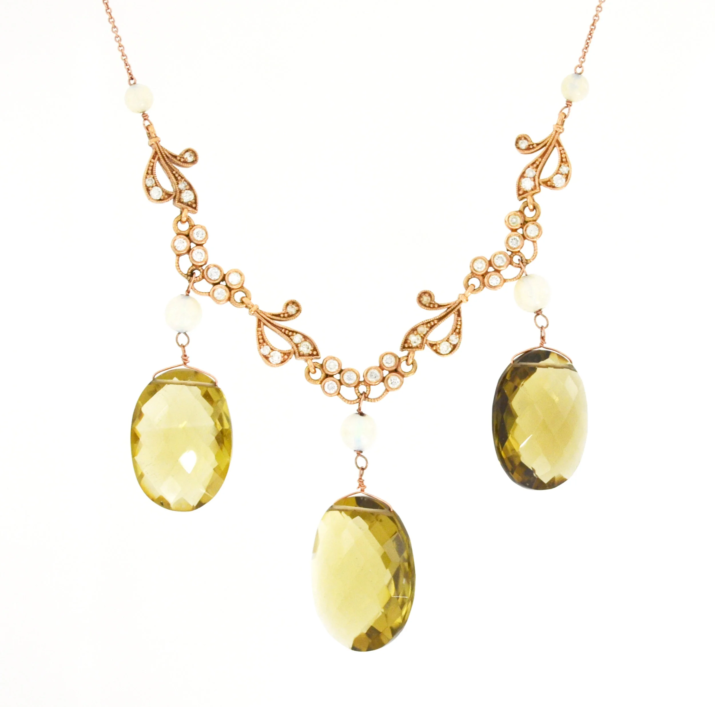 14k Rose Gold Diamonds and Citrine Necklace