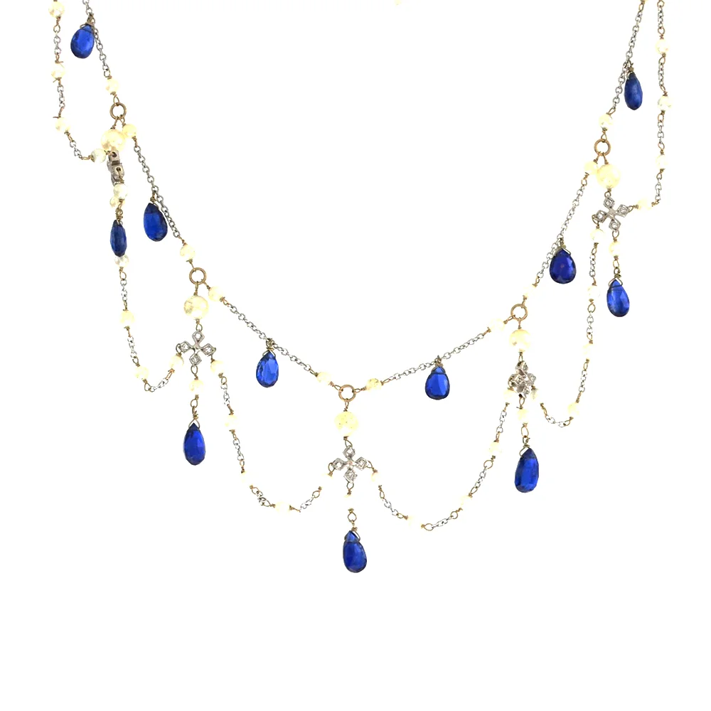 18-22k YG Aquamarine, Appetite, Blue Topaz, White Topaz Necklace