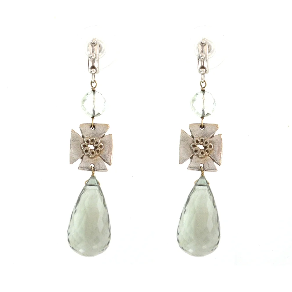 18k Yellow Gold with Green Amethyst and Diamond Earrings